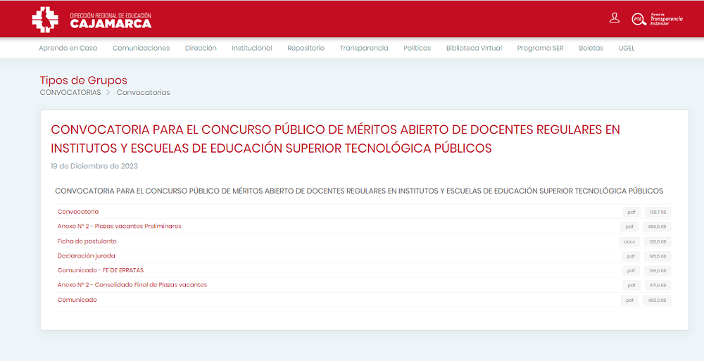 Convocatoria para plaza de docentes regulares para el año 2024.