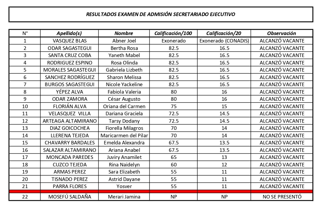 RESULTADOS - ADMISIÓN 2021 - Secretariado Ejecutivo